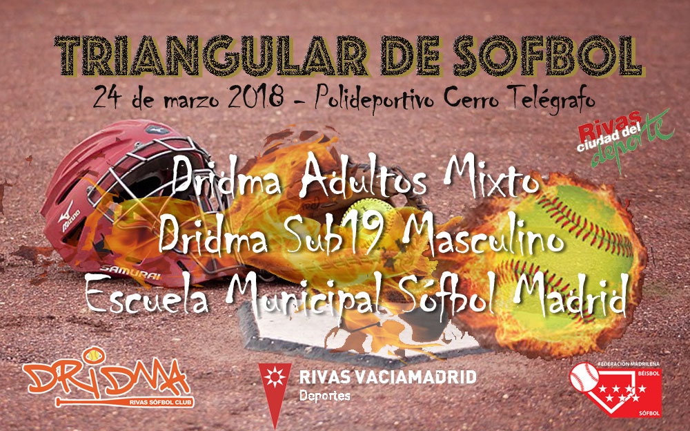 SÁBADO 24 DE MARZO: TORNEO TRIANGULAR DE SÓFBOL 10,30 Dridma Adultos vs. EM de Sófbol 12,15 EM de Sófbol vs. Dridma Juveniles Chicos 14,00 Dridma Juveniles Chicos vs. Dridma Adultos